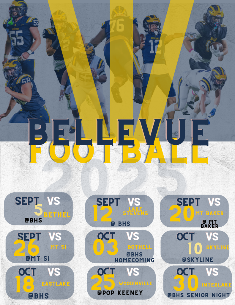 After their Week 3 bye, Bellevue will have their home opener, 9/27 against Mount Si.